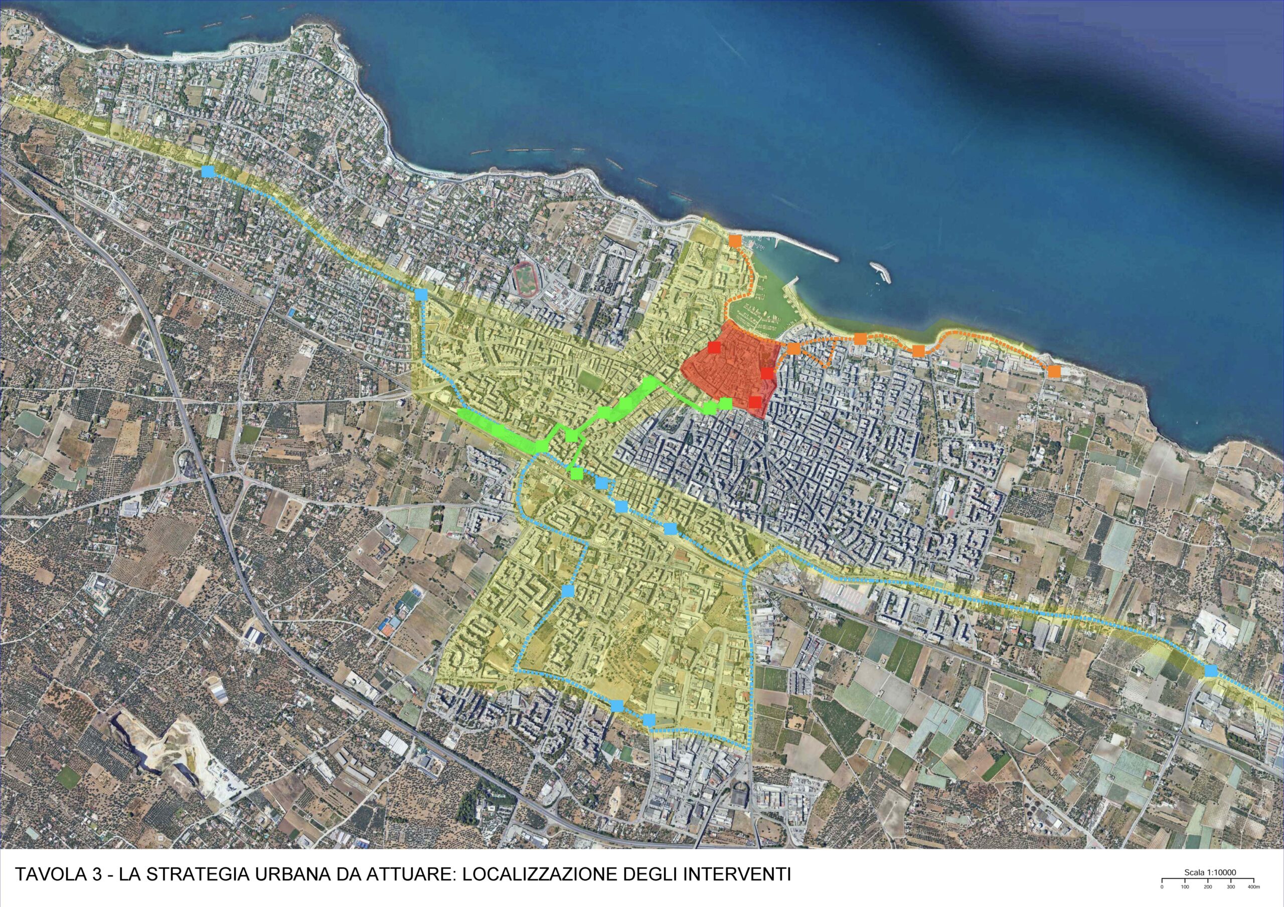 La progettazione, già affidata dal Comune di Bisceglie, si suddivide in più macroaree e comprende diversi interventi, tra cui:
