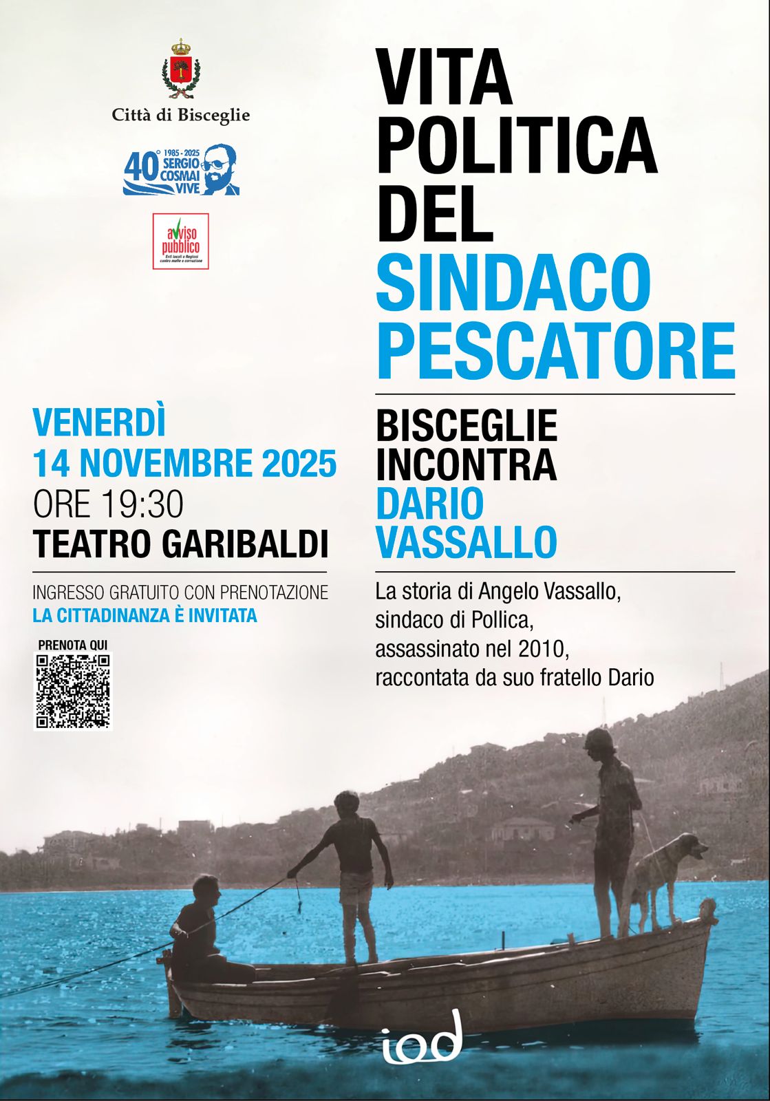 L’incontro, inserito nelle iniziative per la promozione della legalità organizzate in occasione del 40° anniversario dell’omicidio di Sergio Cosmai, biscegliese vittima innocente di ‘ndrangheta, è un viaggio nella storia e nei valori di Angelo Vassallo, il “Sindaco Pescatore” di Pollica, assassinato nel 2010 per il suo impegno a favore della legalità, della tutela del territorio e della sua comunità.